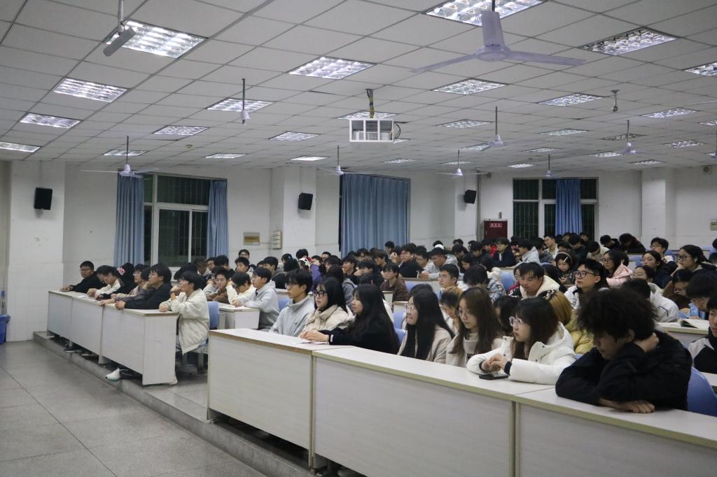 在学习规划方面,陈智老师建议同学们均衡发力,确保每门课程高水平通过,同时抓住大一、大二的黄金时期攻克英语四、六级和计算机等级考试。并分享了英语基础薄弱学生顺利拿到学分,通过等级考试的典型案例,让同学们深受启发。在工作实践方面,陈智老师鼓励同学们积极参与学生工作和社团活动等,提升自身的服务意识和管理能力。在人际交往方面,他建议理性与感性并重,树立正确恋爱观,并结合自身处理学生心理危机的经历,提醒同学们珍惜生命,理性看待情感问题。
